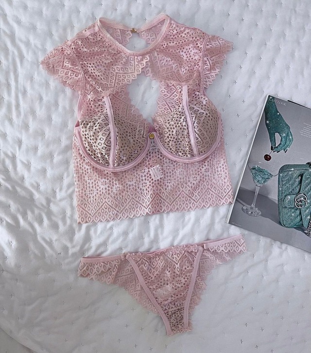 ベビーピンク♡ ※Mサイズ 個性的なクロップド丈のランジェリーセット。 トレンド感あるデザインで、おしゃれに楽しめます。ブラトップはワイヤーが有り、柔らかな素材が肌にやさしくフィット。ショーツはレース素材で、セクシーさもプラスされています。着け心地も快適で、一日中気持ちよく過ごせます。 このセットは、女性らしさを引き立てるアイテムです。特別な日だけでなく、普段使いにもぴったりです。ぜひお気に入りのアイテムとして、ご使用ください。 ※当店は全て、本場のブラジリアンランジェリーです。 (メイドインブラジル)